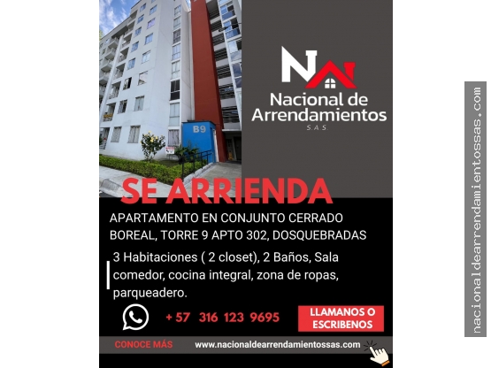 EN RENTA APARTAMENTO EN BOREAL PISO 3 DOSQUEBRADAS